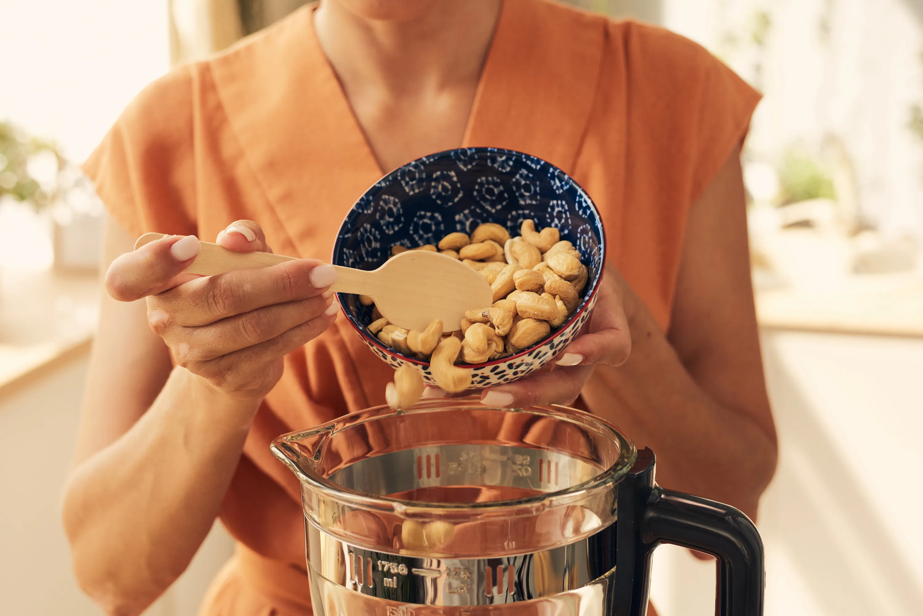 Adding nuts to your diet may also help with weight management. If you’ve been avoiding nuts because of their high fat and high calorie content, there are two reasons you might want to reconsider. Cashews (and nuts in particular) are high in fiber and dietary fat, which are incredibly satiating, so you only need a small serving to feel full and satisfied. Additionally, research shows that we might not absorb all their calories when we eat cashews.6 That’s because their fiber is believed to trap some of their fat, which might carry it out of your body during digestion.