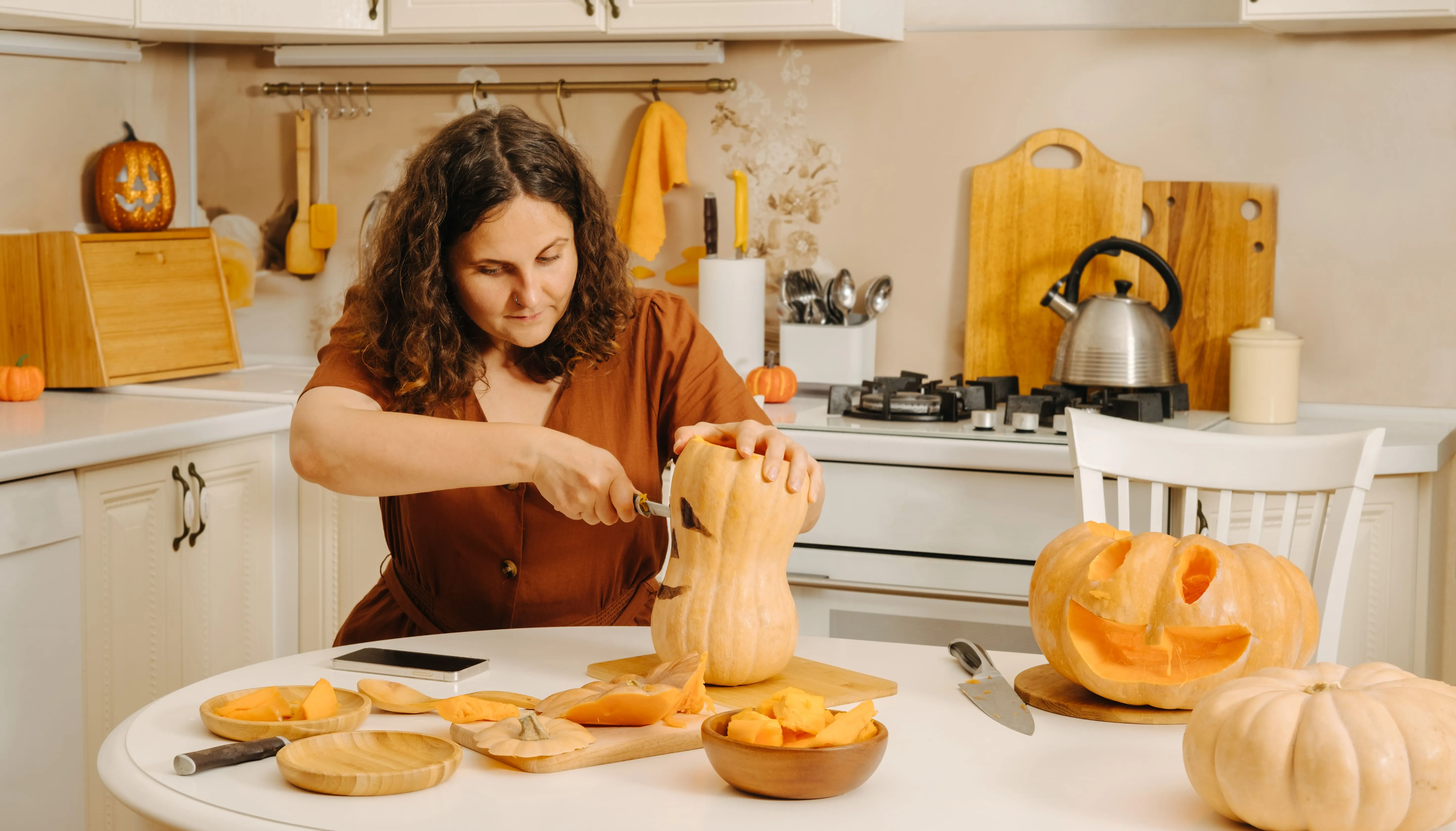 - While the squash roasts, heat olive oil in a saucepan over medium heat. Add garlic, sauté 1–2 minutes.